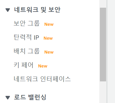 그 다음 aws 홈페이지로 가서 '네크워크 및 보안'에 보안그룹을 클릭
